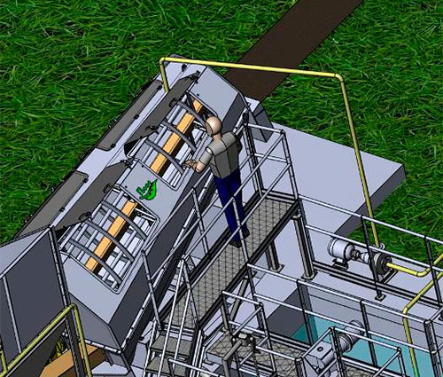 Форма лотка позволяет использовать большие объемы воды для вымывания частиц, что делает возможной загрузку большого количества отходов за короткие интервалы времени.