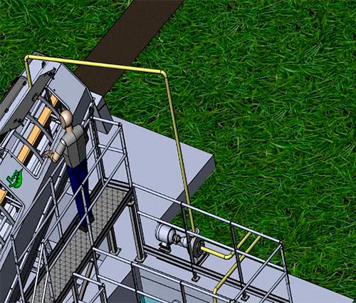 Загрузка: электропневматически контролируемый (FESTO–Германия) шаровой клапан. Выгрузка: Ø150 мм поворотная заслонка (WAM–Италия), водопроводная линия имеет расширительный бак 25 л для предотвращения гидравлических ударов.