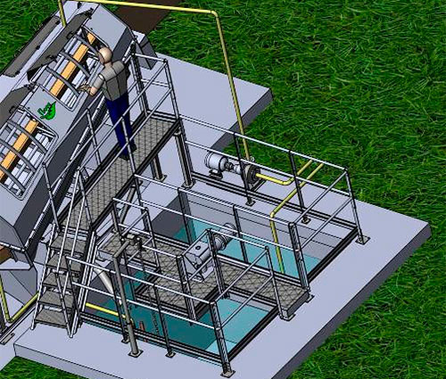 Приемного бункера для отходов с форсунками для очистки бункера, решетки.