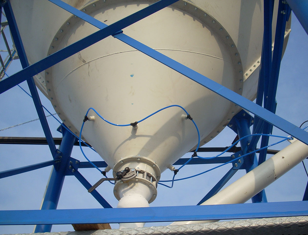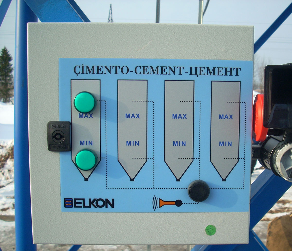 Шарнирное соединение тензодатчиков позволяет достигнуть точной дозировки; шланг-компенсатор (Германия) избыточного давления. Выгрузка цемента в смеситель осуществляется с помощью двух электропневматических поворотных заслонок. Дозатор цемента оснащен вибратором OLI (Италия).
